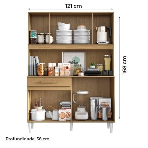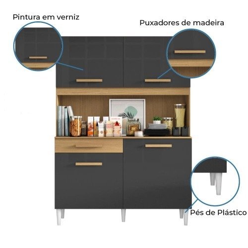 O Armário de Cozinha Compacta Marina possui amplo espaço interno, para guardar todos os seus utensílios. Acabamento em verniz garantindo a conservação do móvel. Possui 1 gaveta com corrediças metálicas, que oferecem um deslizar suave das gavetas. Confeccionado com produtos de alta qualidade, que oferece ao móvel beleza, resistência, durabilidade e prolongando a vida útil do produto. / dimensões: A = 168 cm L = 121 cm P = 38 cm / modelo: Armário de Cozinha Compacta Marina / marca: Aramóveis / cor: Atacama / Grafite / material: mdp 12/15 mm / acabamento: Fosco / Alto Brilho / pintura: Verniz / puxadores: Madeira / pés: 5 / material dos pés: Plástico / tipo de puxadores: Externos / dobradiças: Metálicas / portas: 4 / gavetas: 1 / prateleiras: 3 / vidros: Não / espaço para garrafas: Não / peso: 43kg / diferencial: Amplo espaço interno, garantindo maior firmeza ao móvel. / garantia: 3 meses / Montagem não inclusa. Entregamos até a porta de entrada da casa do cliente ou até a portaria do condomínio.