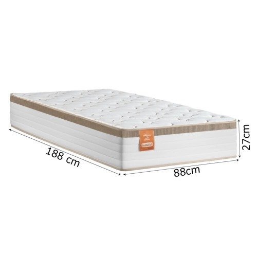 | Medidas do colchão: | A = 27 cm L = 88 cm P = 188 cm |