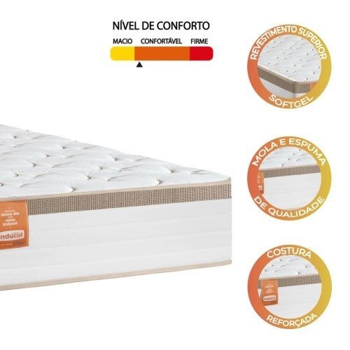 revestimento interior: Molas ensacadas aliada com poliestireno expandido que faz com que o colchão suporte até 130kg por pessoa